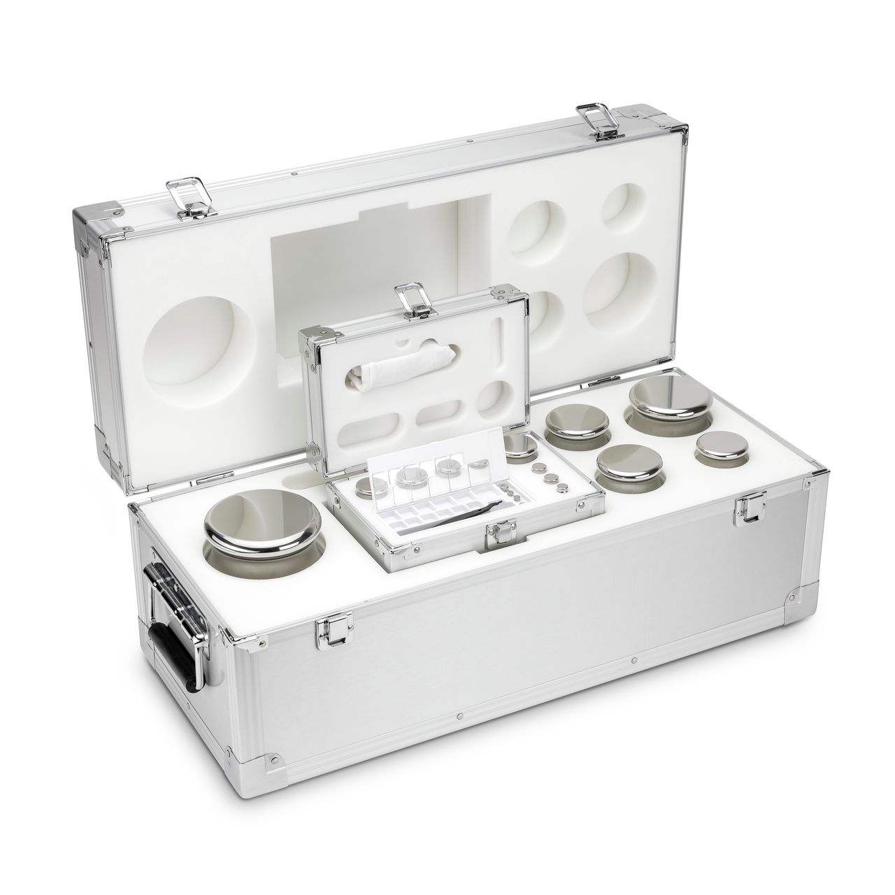 סט משקולות, E2, 1 גרם – 10 ק”ג, צורה קומפקטית, פלדת אל חלד מלוטשת, במארז אלומיניום