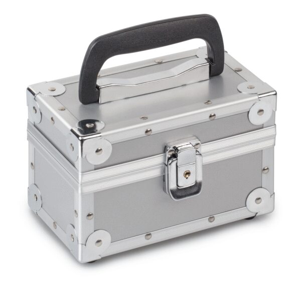 סט משקולות 303-026, OIML Class E1, ערך נקוב 1 מ”ג – 50 גרם, ידית, נירוסטה מלוטשת, במארז אלומיניום