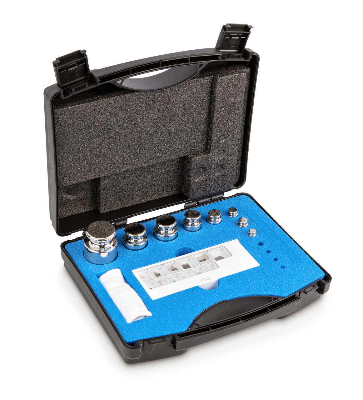 סט משקולות 303-03, OIML Class E1, ערך נקוב 1 מ”ג – 100 גרם, ידית, פלדת אל חלד מלוטשת, במארז עץ