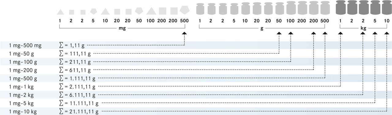 סט משקולות 303-05, OIML Class E1, ערך נקוב 1 מ”ג – 500 גרם, ידית, פלדת אל חלד מלוטשת, במארז עץ